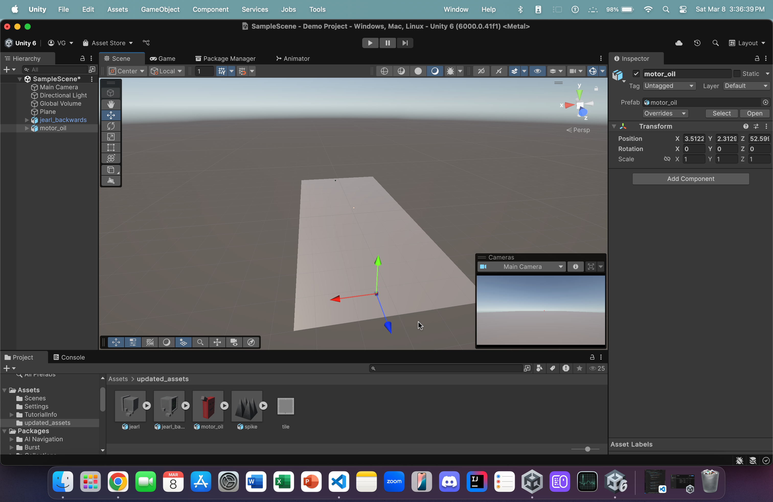 Repeat step 4 but, this time, drag and drop the motor_oil asset onto the ground