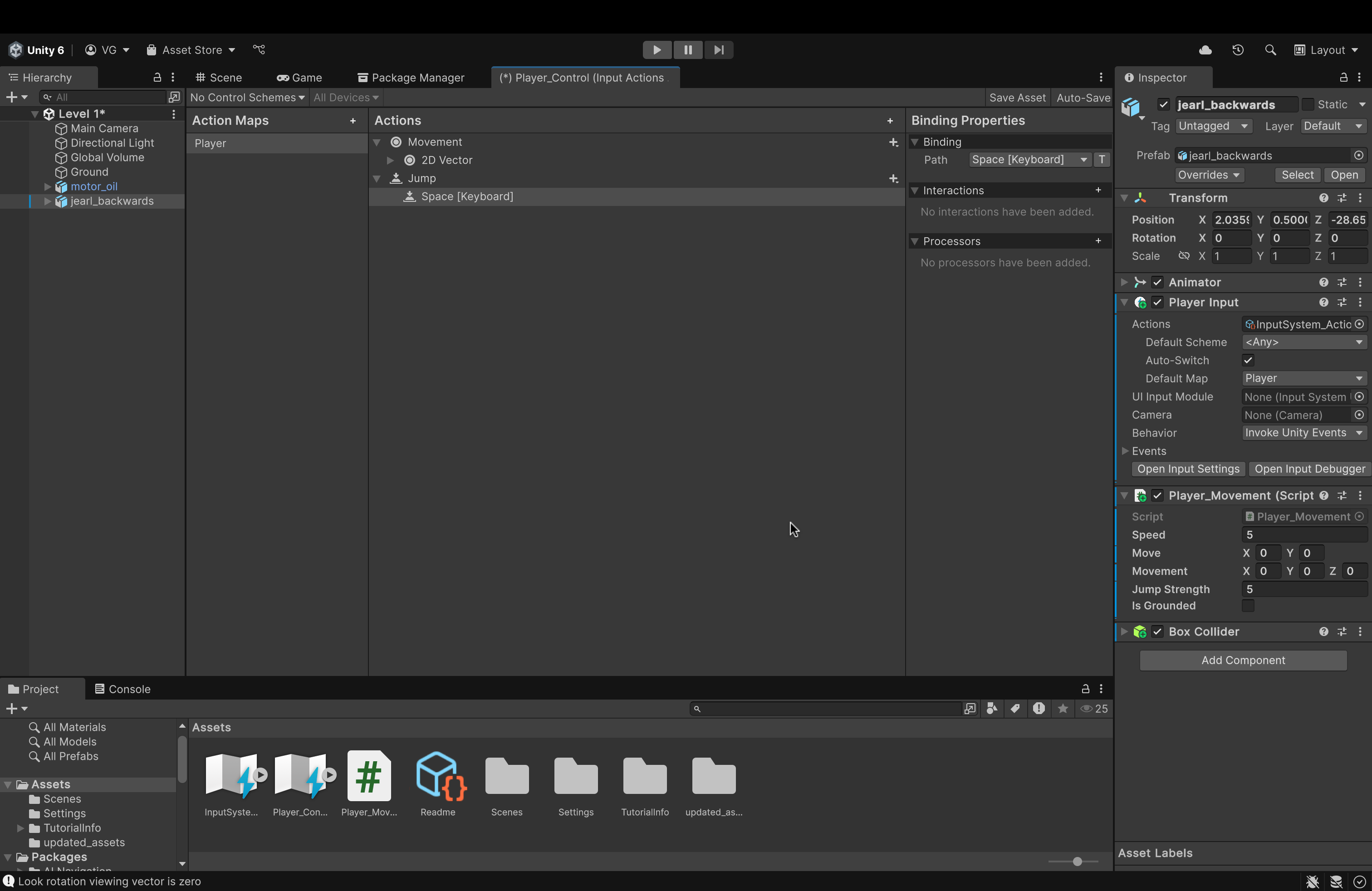 - If you remember from earlier, our movement (inside our action map) is strictly in 2 directions (that's what we want). We limited our key bindings to Vector2.