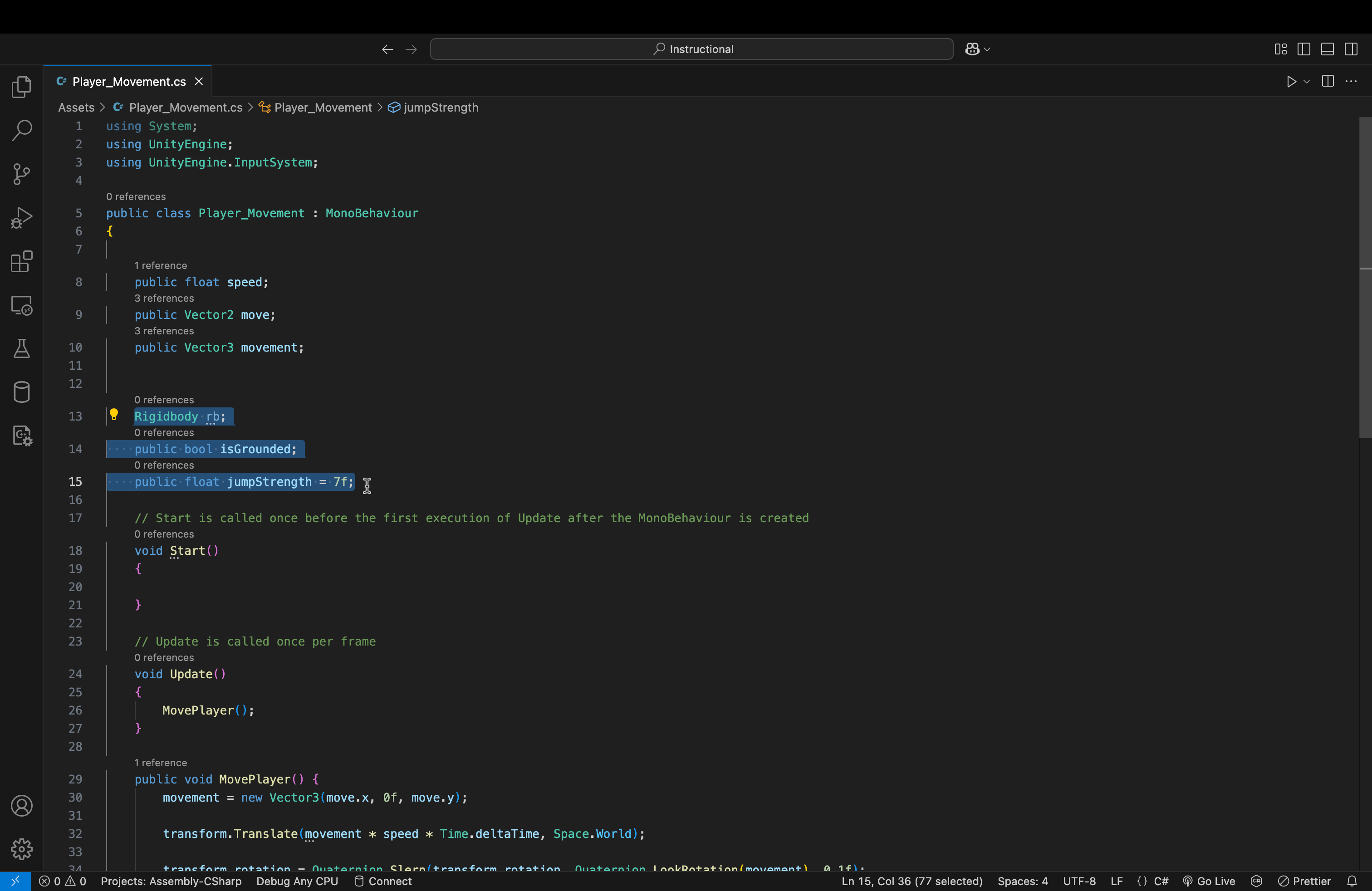 - movement = new Vector3(move.x, 0f, move.y);