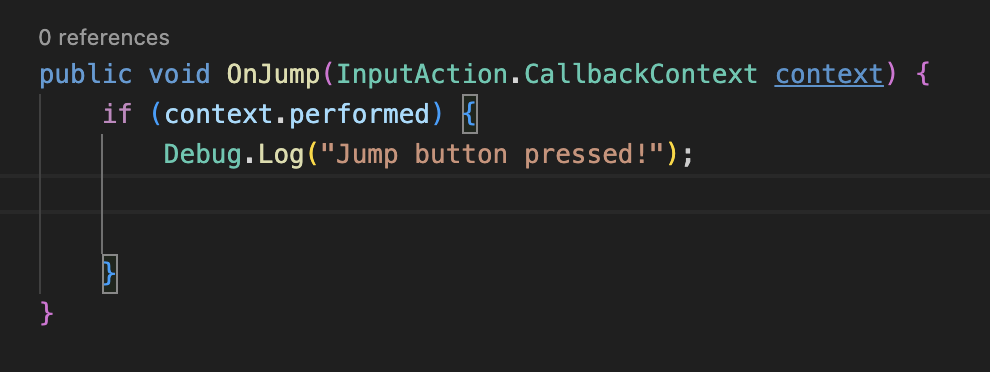 We nested this addition inside of our context.performed if statement.